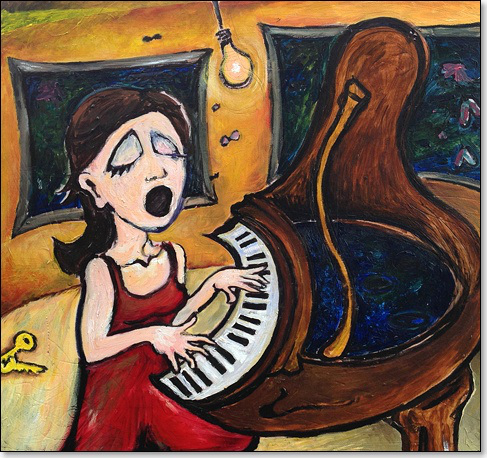 And no, you can't play that in this serious hall Only apes, wearing capes, get the curtain call. Parasol, Sarah Slean (imagem: The Sweepers and the Maestro, Sarah Slean)